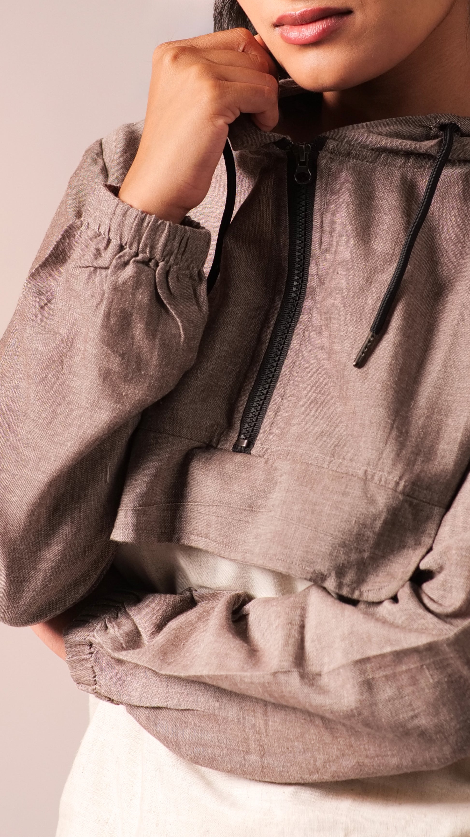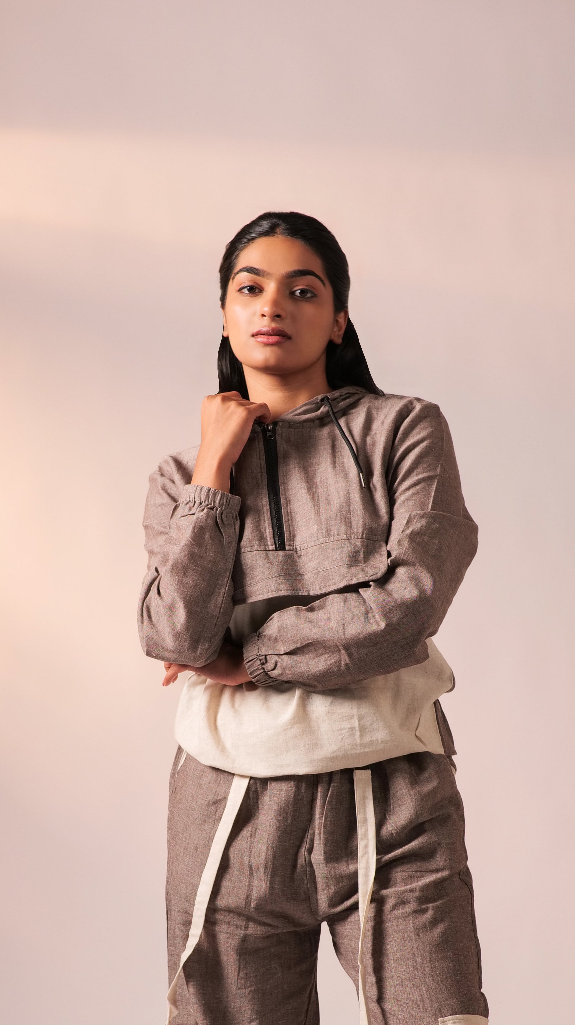 - The cotton hoodie provides a relaxed and comfortable fit with a stylish two-tone colour block design in neutral hues, perfect for casual wear. The hood features drawstrings, adding an urban and sporty touch.