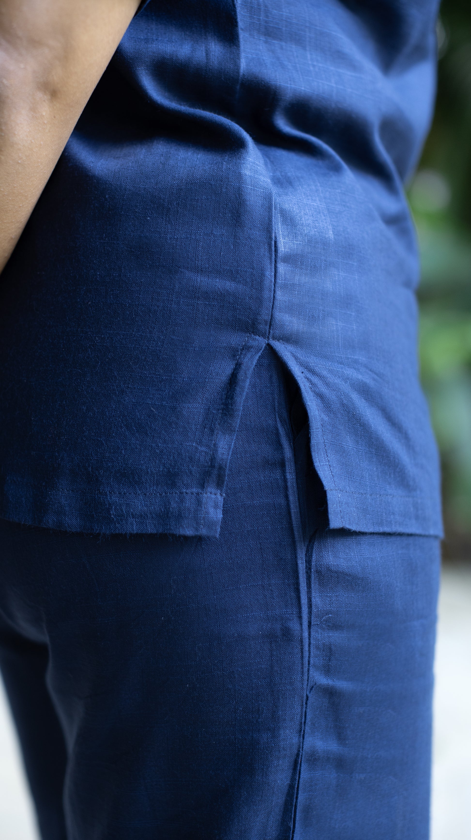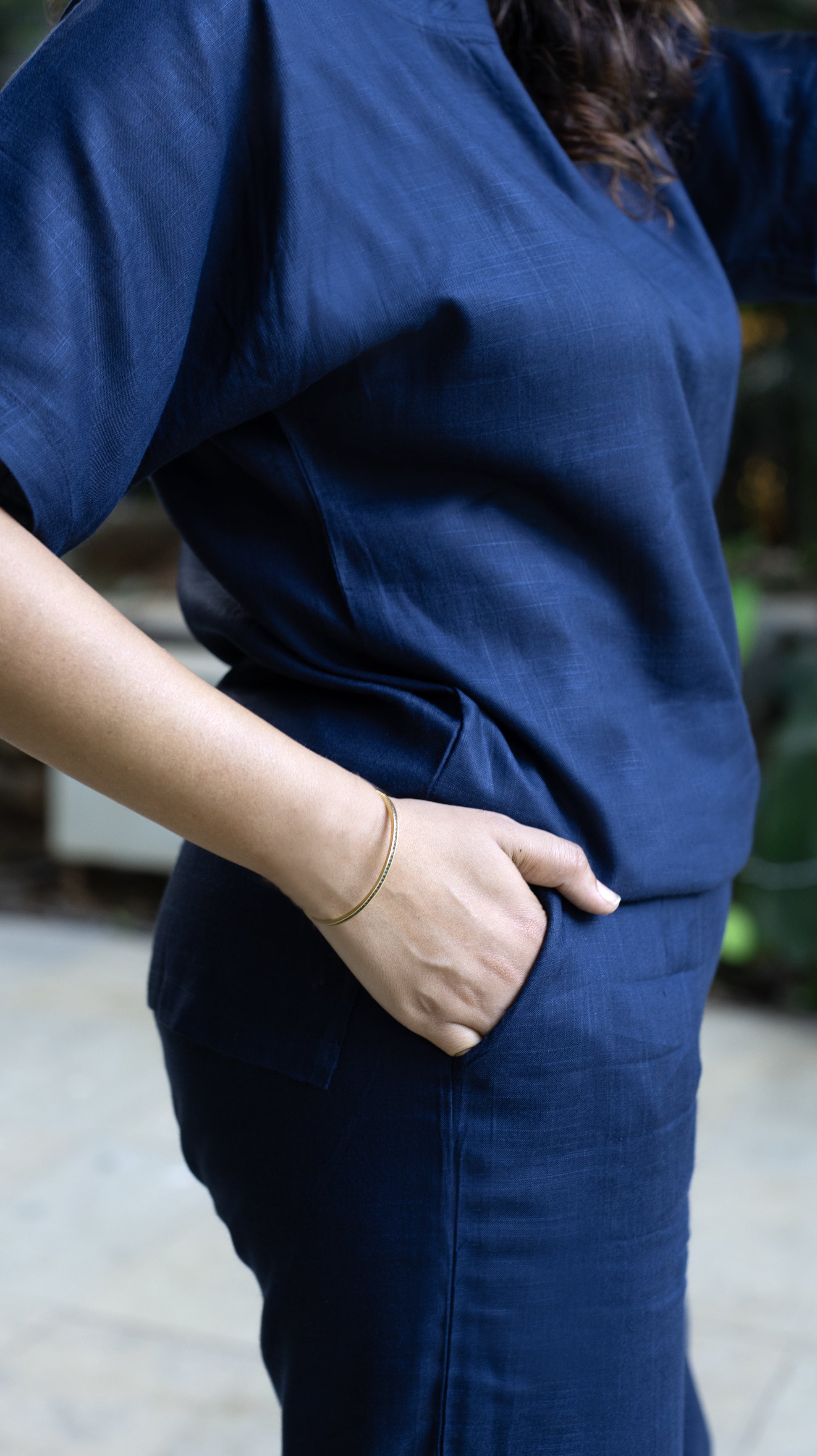 - Minimalist design with a rich, navy blue, adding a refined yet cozy aesthetic to the ensemble.