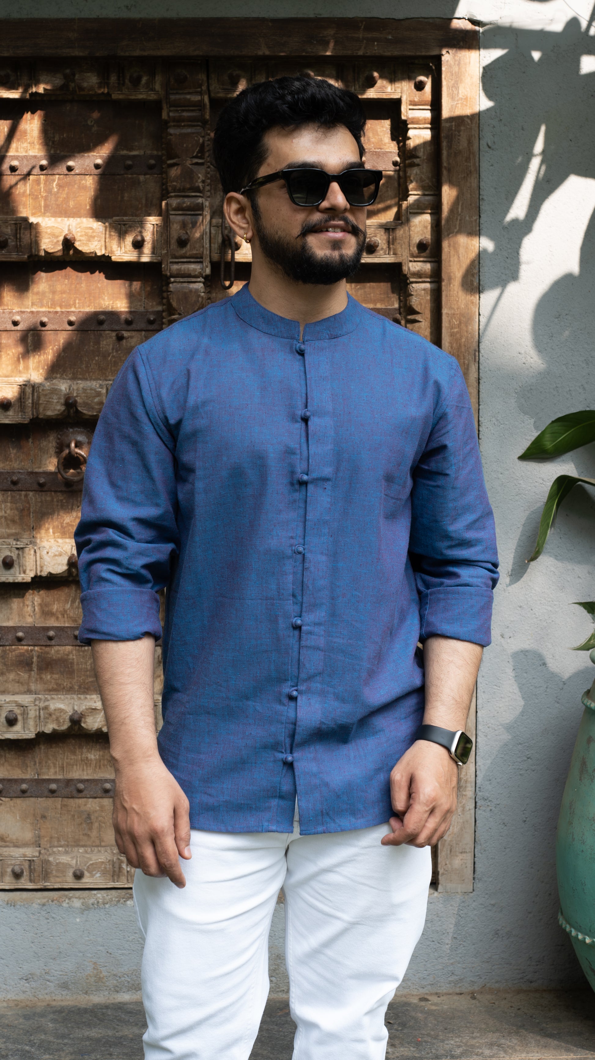 Full Sleeve Kurta Shirt - Ink Blue