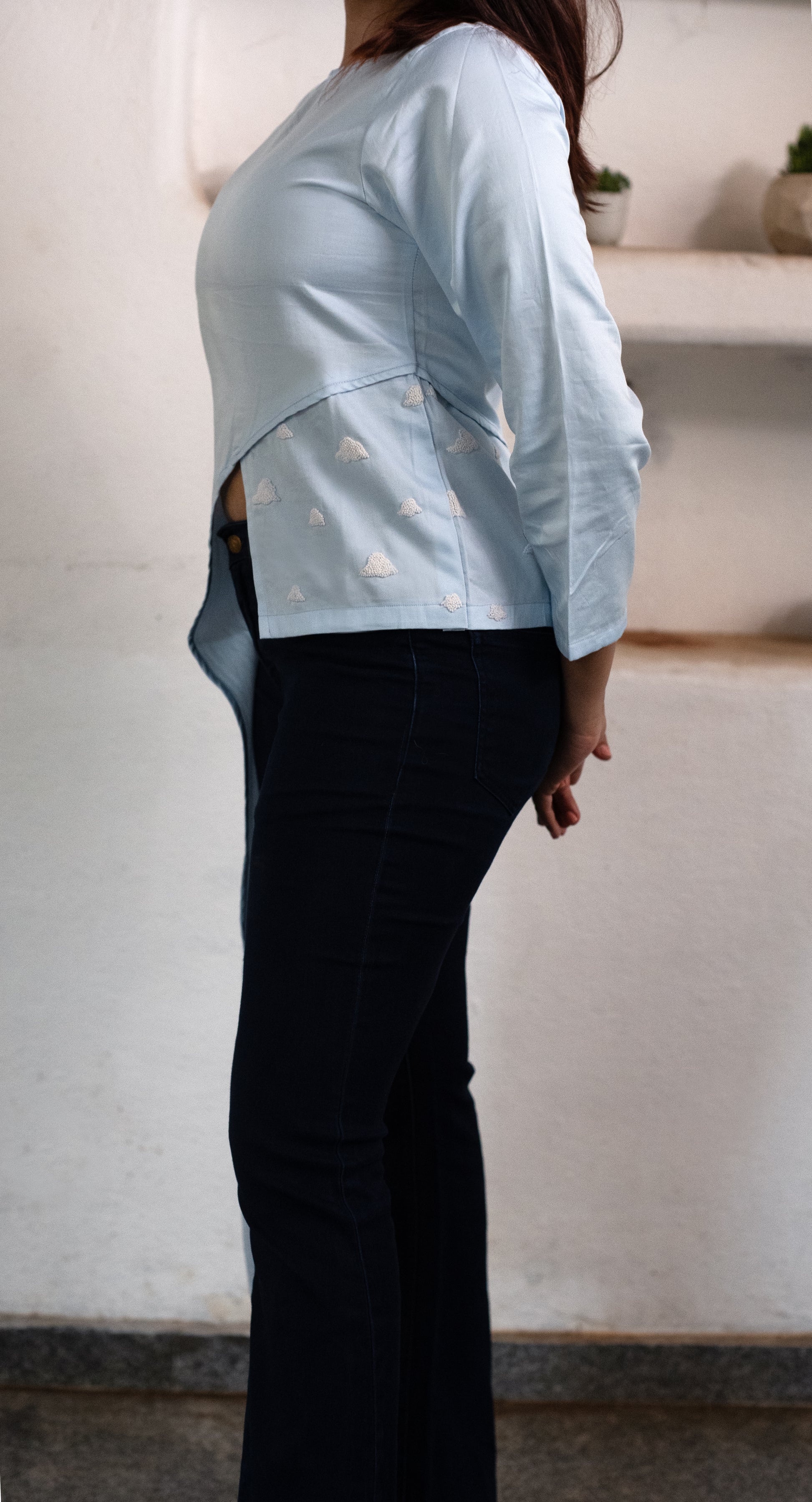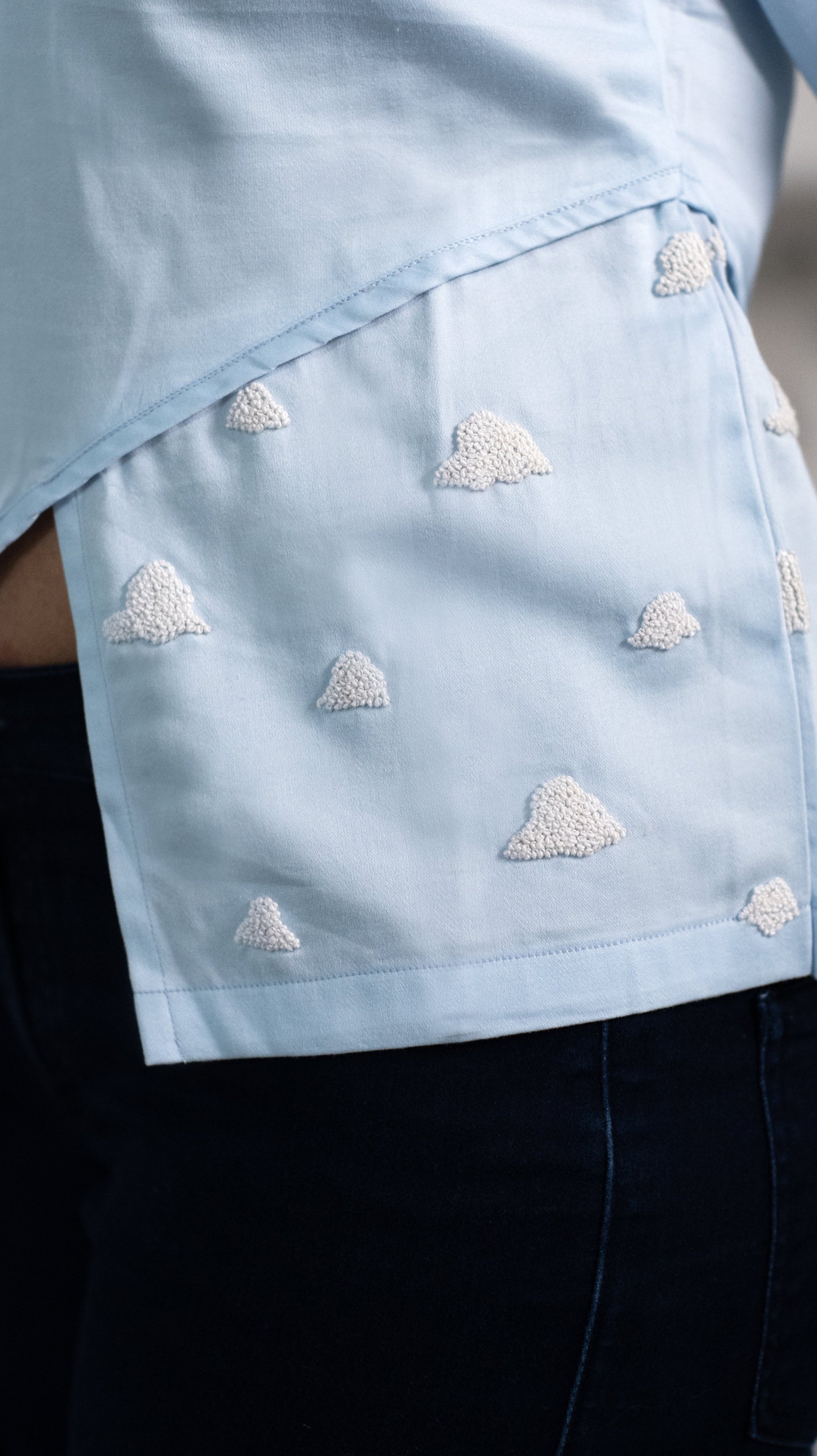 - Delicate hand-embroidered cloud motifs, adding a dreamy, artisanal charm.
