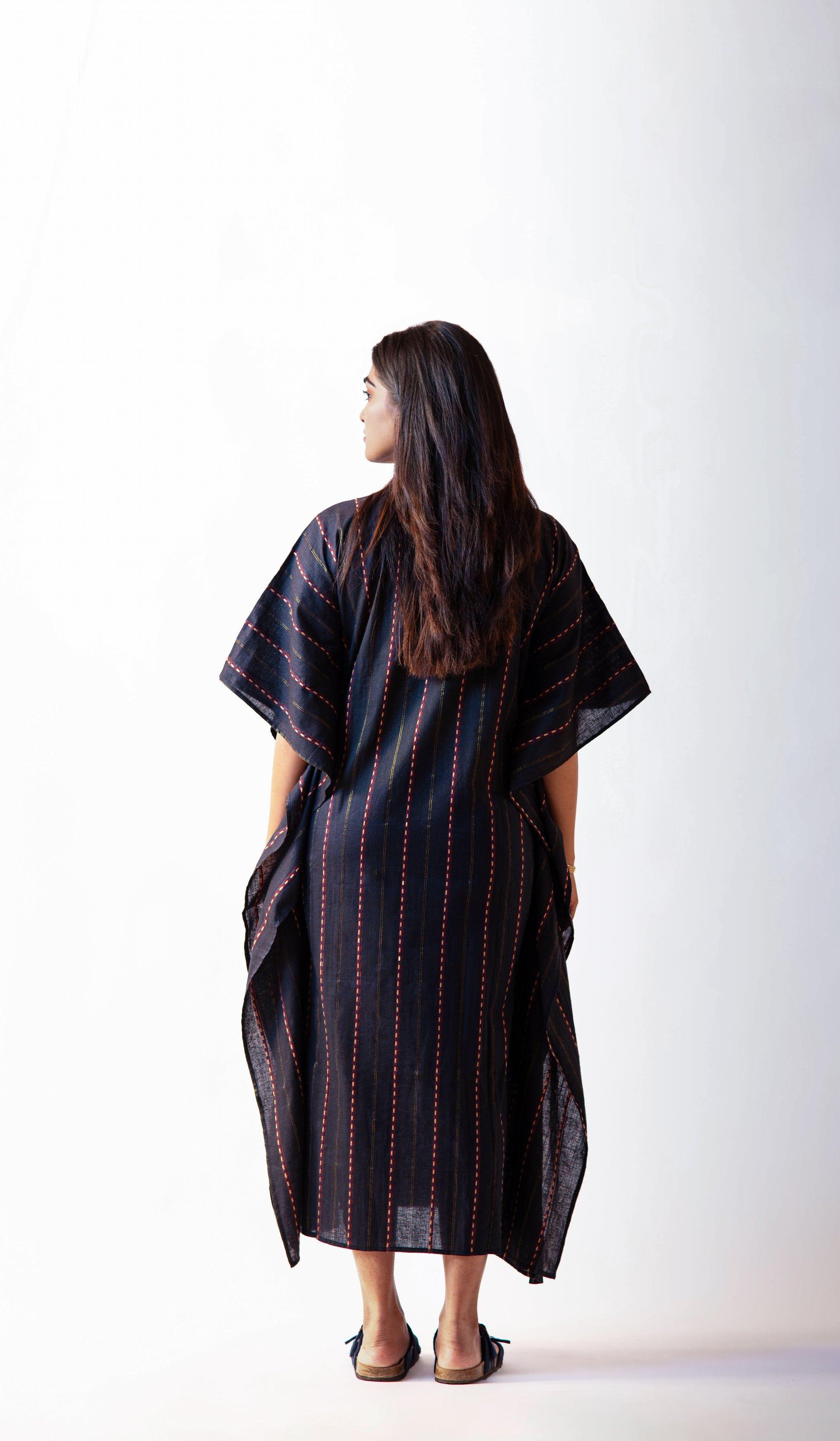 - With its classic neckline and wide sleeves, this kaftan is as ideal for a casual day out as it is for an intimate gathering.
