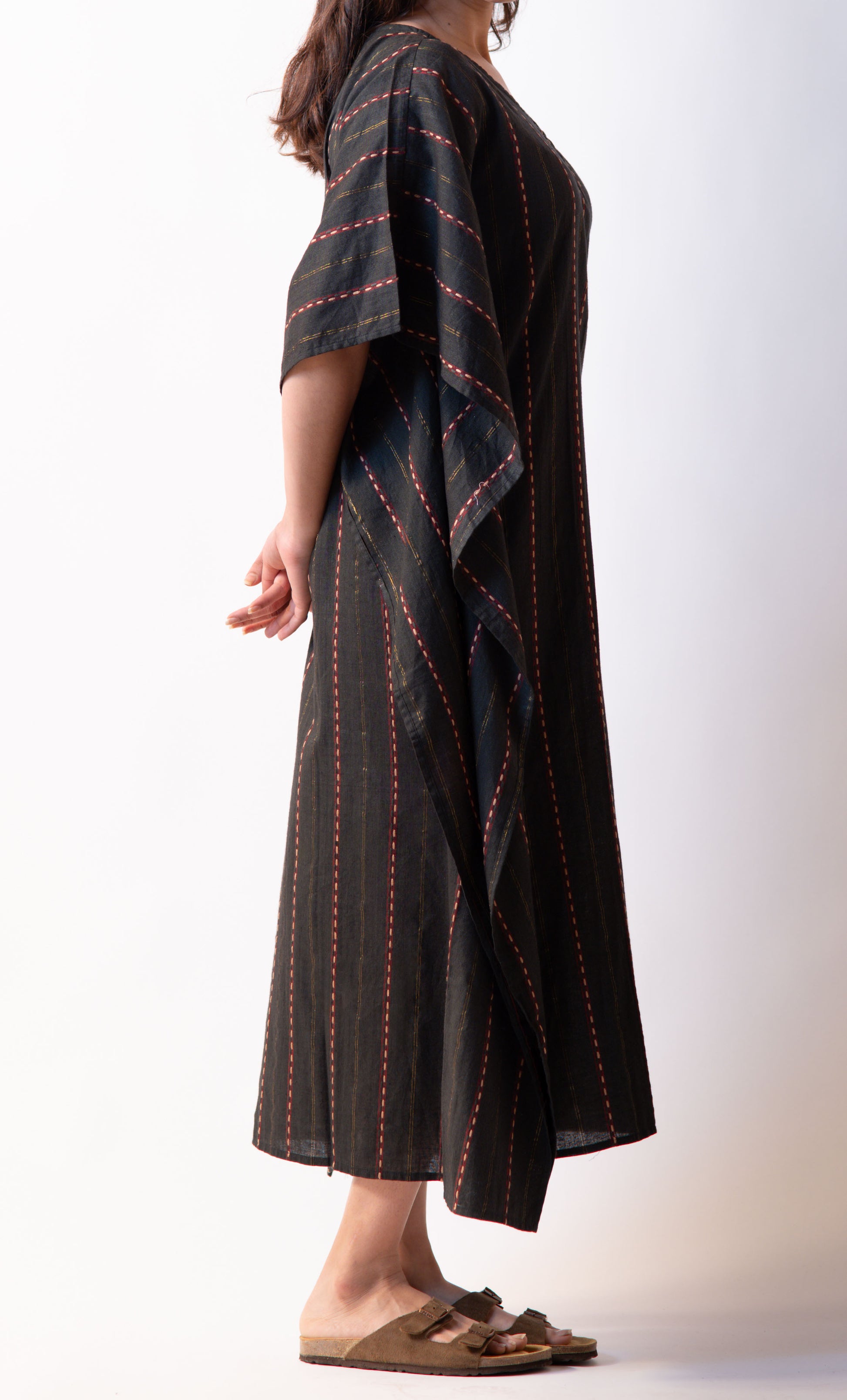 - With its classic neckline and wide sleeves, this kaftan is as ideal for a casual day out as it is for an intimate gathering.