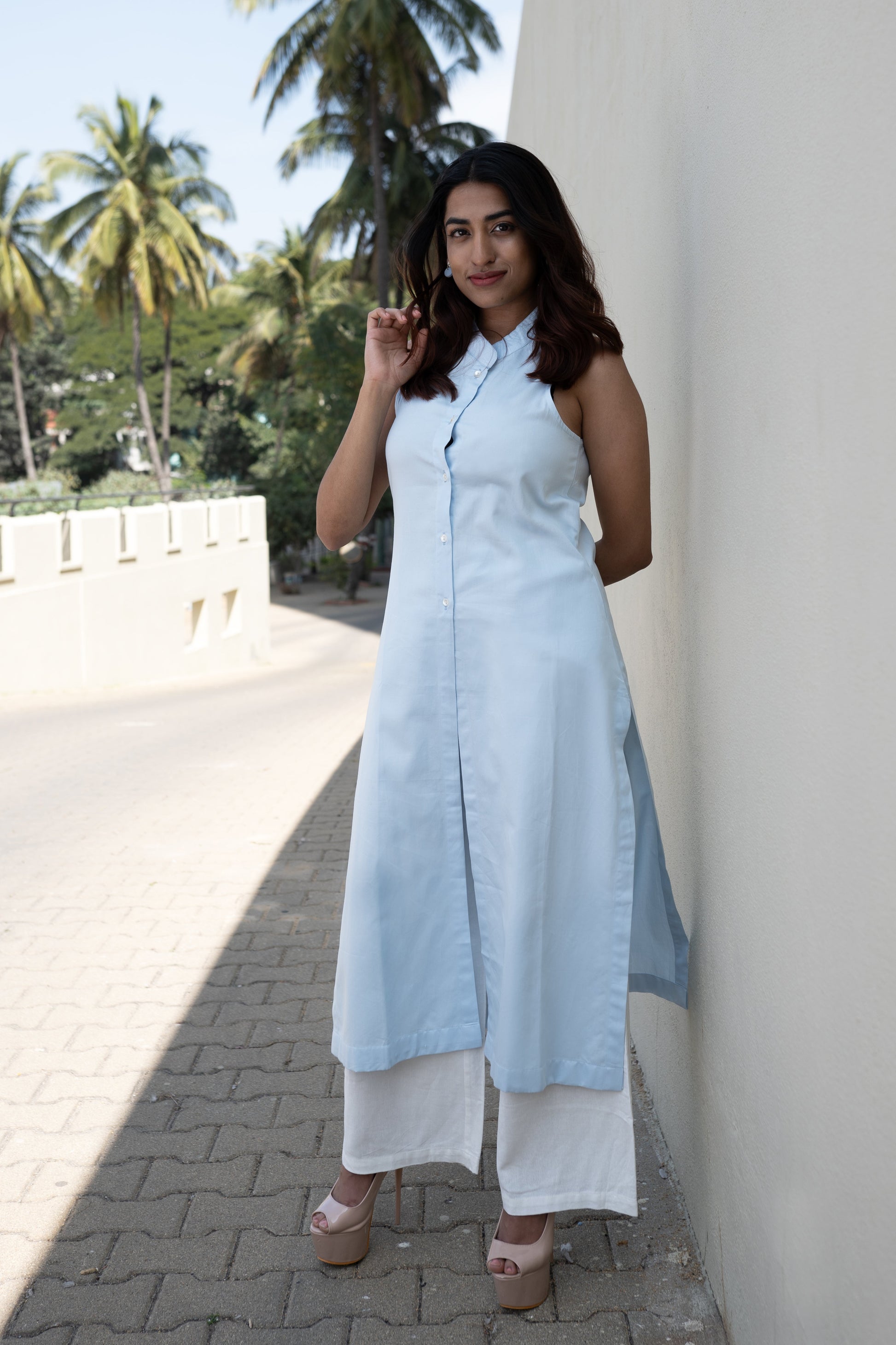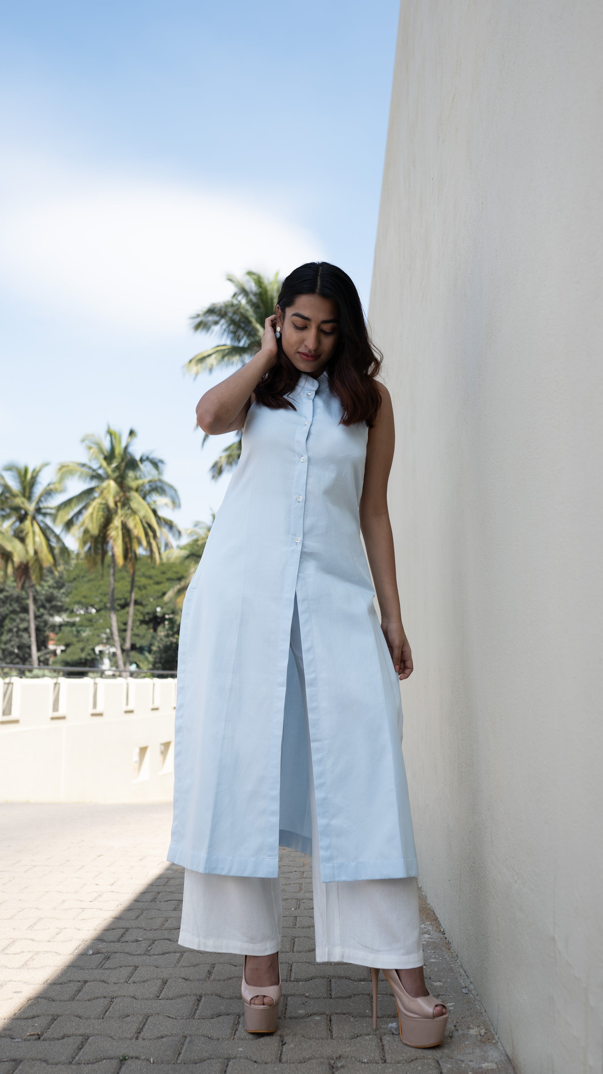 - A soft sky blue hue, radiating understated elegance and charm that pairs beautifully with denim, straight pants, or layered looks, transitioning effortlessly from casual to refined.