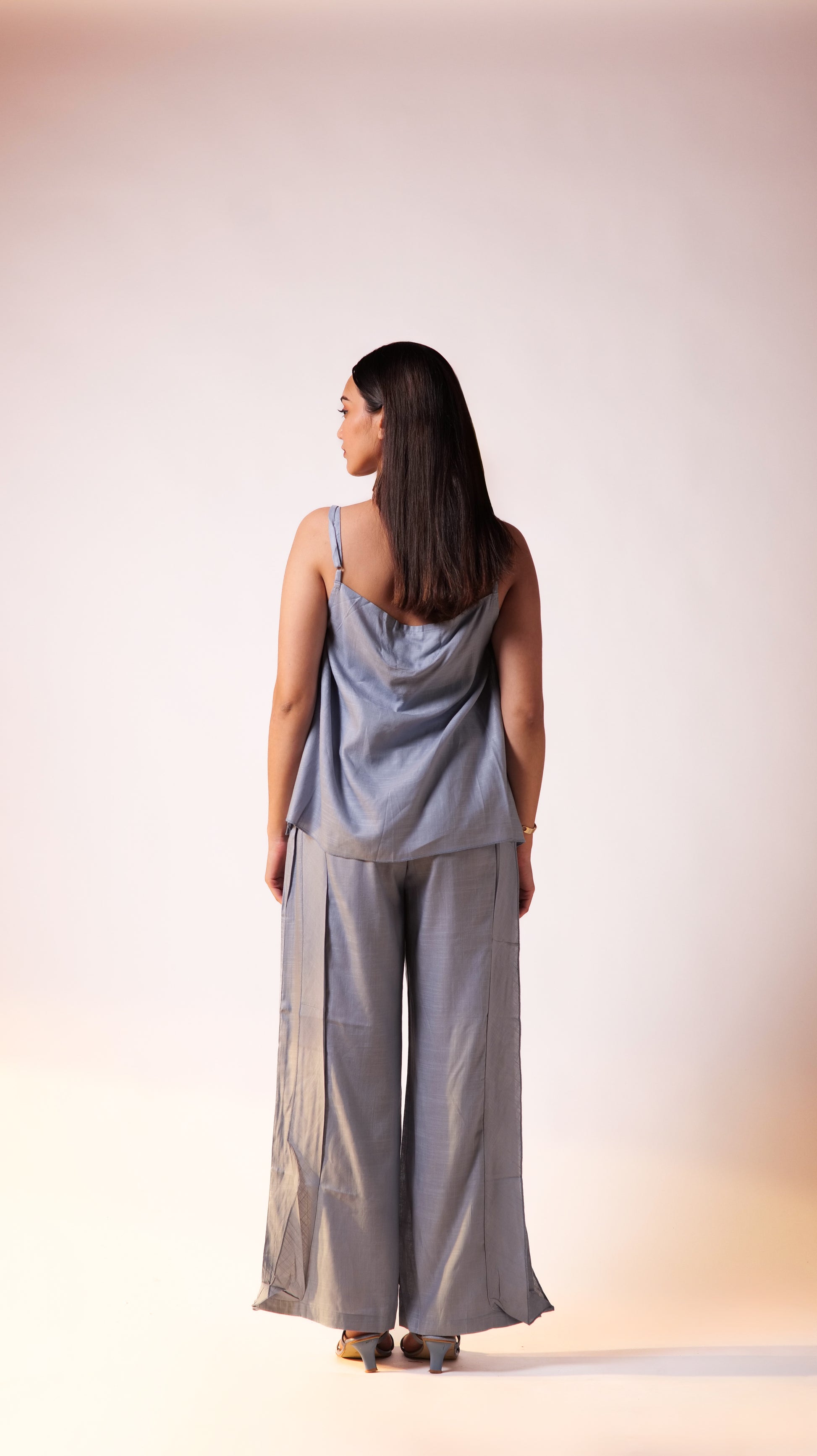 - With its flowing drapes and relaxed fit, this set combines elegance with comfort. Paired with minimal accessories, the outfit achieves a refined, effortless look, perfect for daytime events or relaxed evenings.