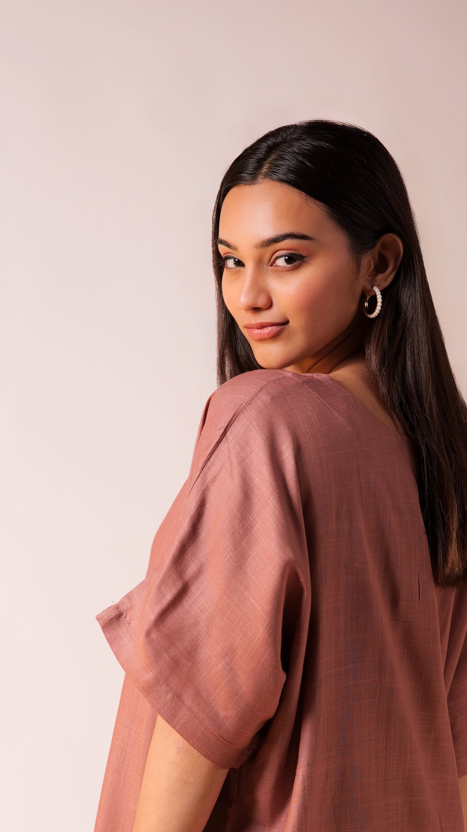 - The soft, salmon colour is versatile and can be paired with various accessories, making it easy to dress up or down depending on the occasion.