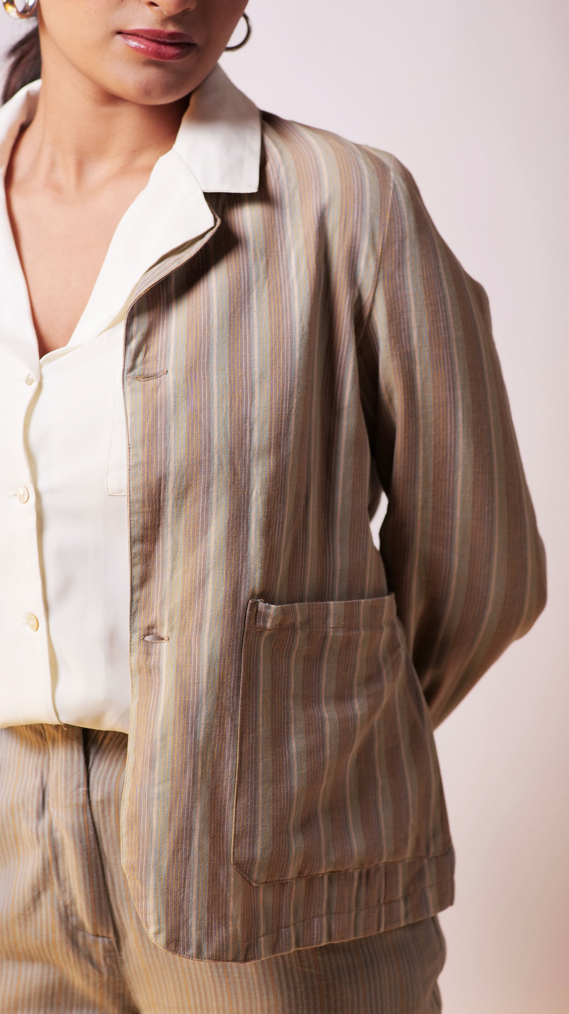 - The soft, earthy striped pattern is subtle yet eye-catching, blending neutral tones that add warmth and sophistication to your wardrobe. Ideal for both minimalists and those who love understated elegance.