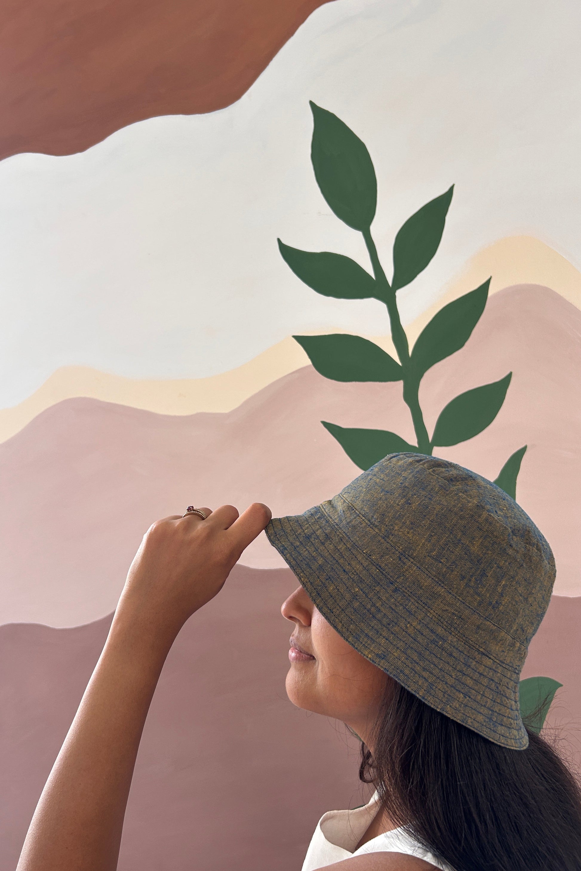 Two moods, one hat. This reversible bucket hat brings together Indigo blue and grey tones for a rich, winter-inspired palette. Thoughtfully crafted from upcycled fabric remnants left over from garment production, it's a sustainable choice that gives new life to beautiful textiles. Made in Leecoceel – a soft, breathable, and eco-conscious fabric – this hat is all about comfort with character.