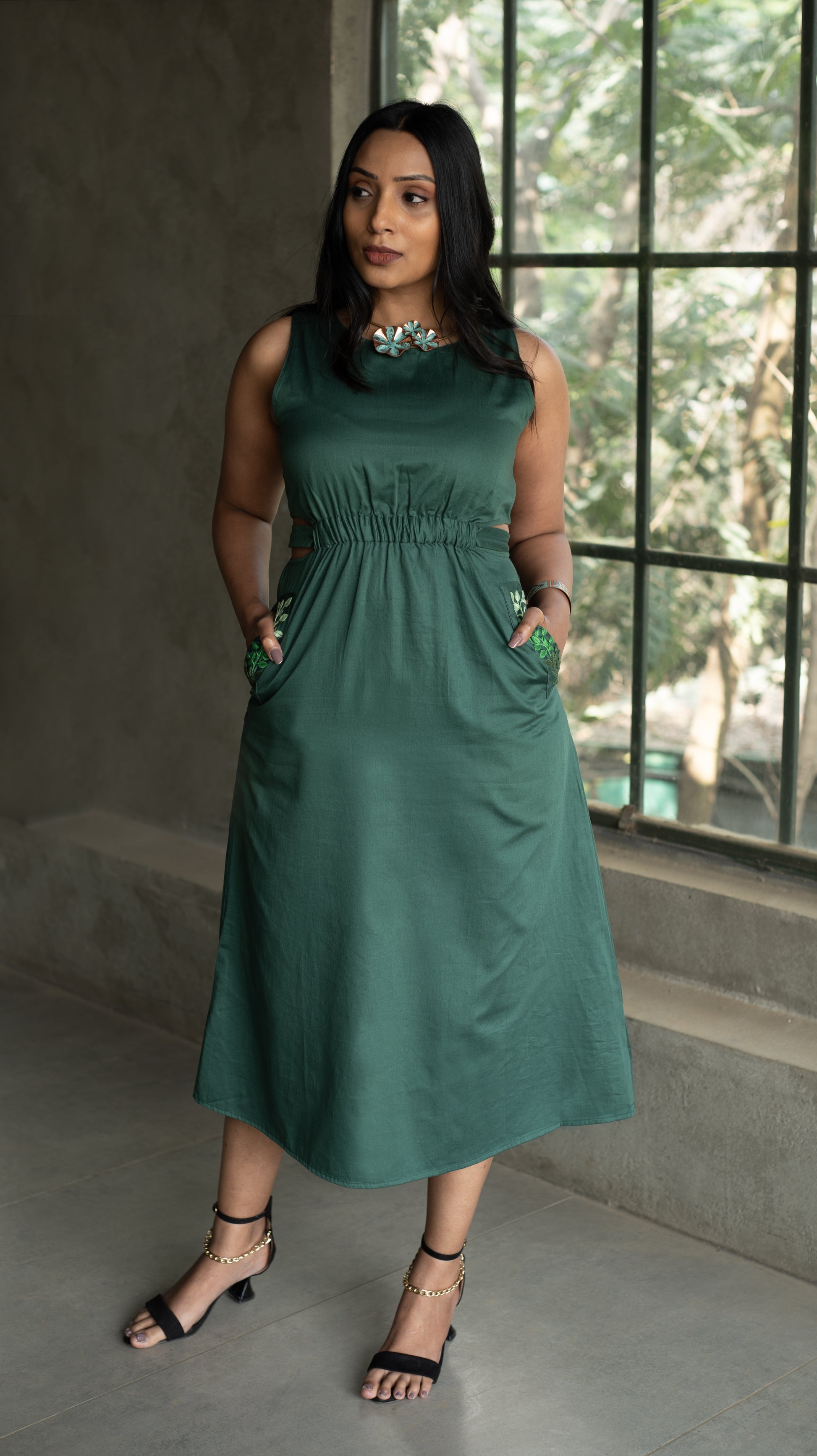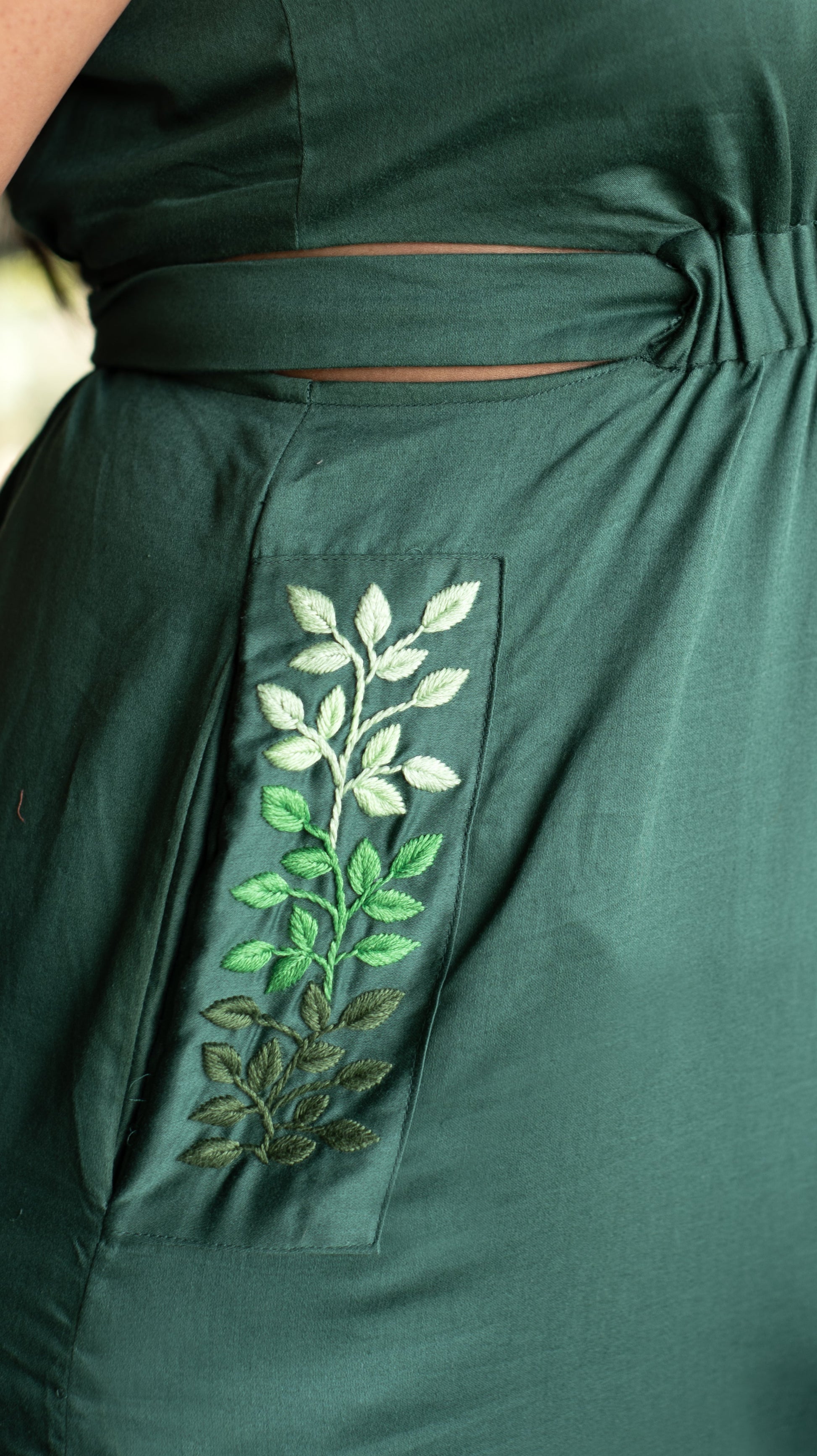 - Intricately hand-embroidered leaf motif on the pockets, bringing a touch of nature-inspired artistry to the design adding to the collection of elements of nature