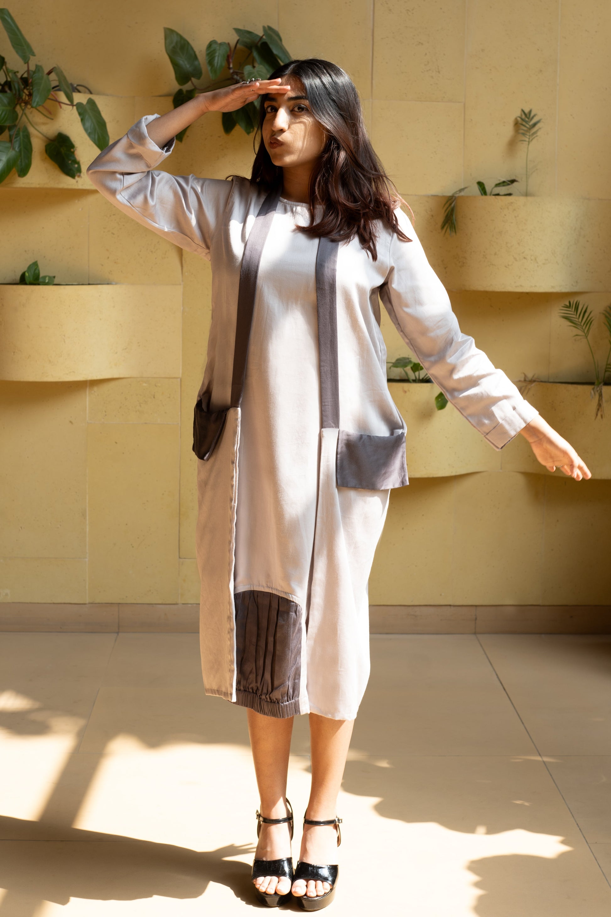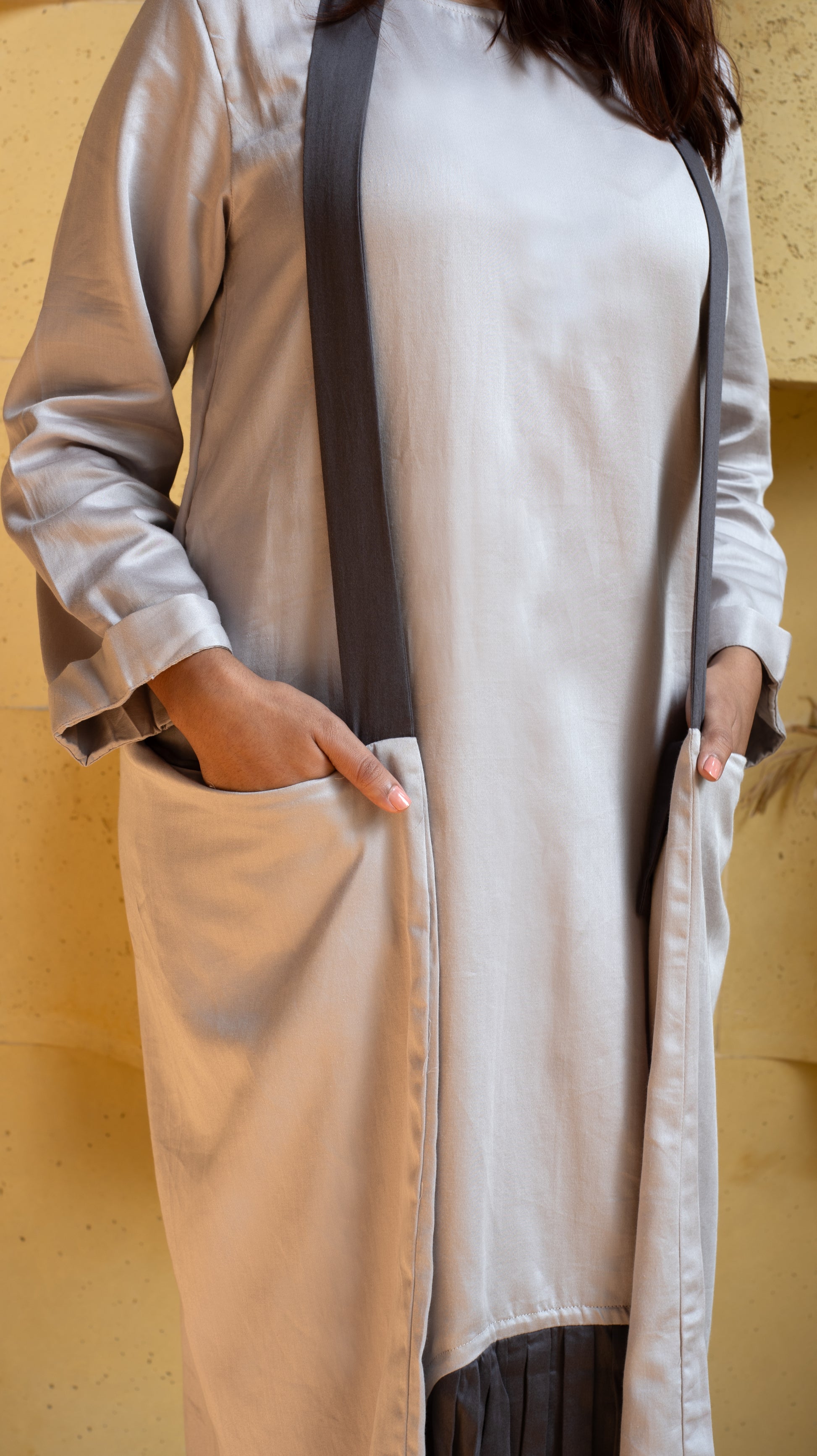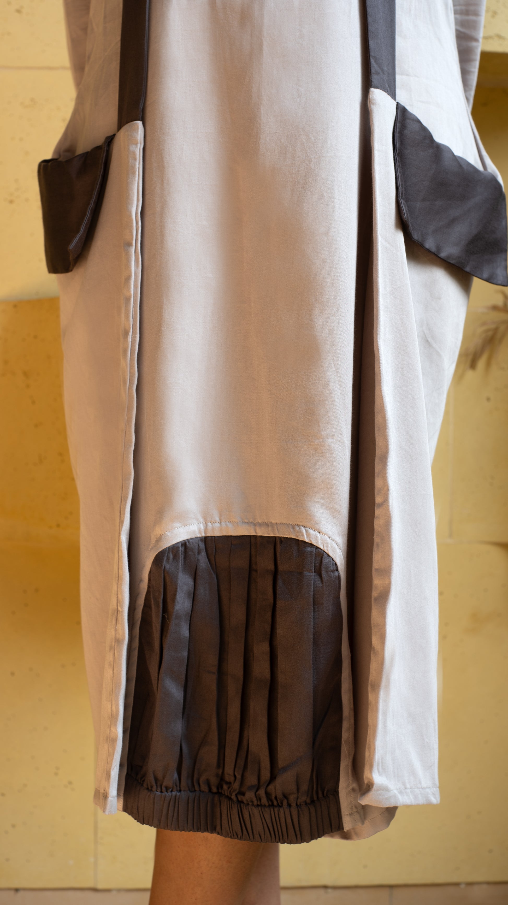- The pleated panel detail at the hem introduces an unexpected tactile element, giving the dress a refined edge.