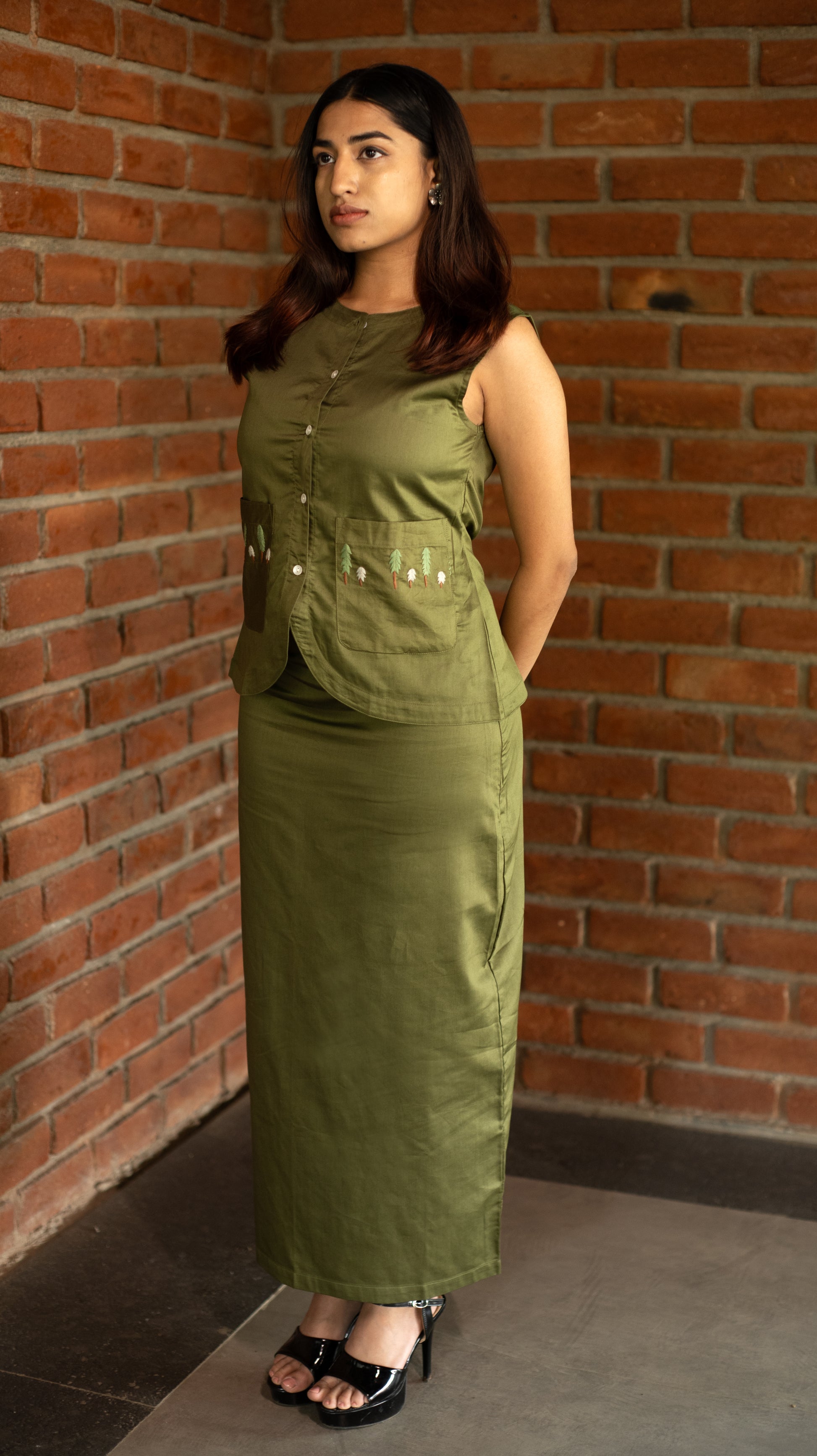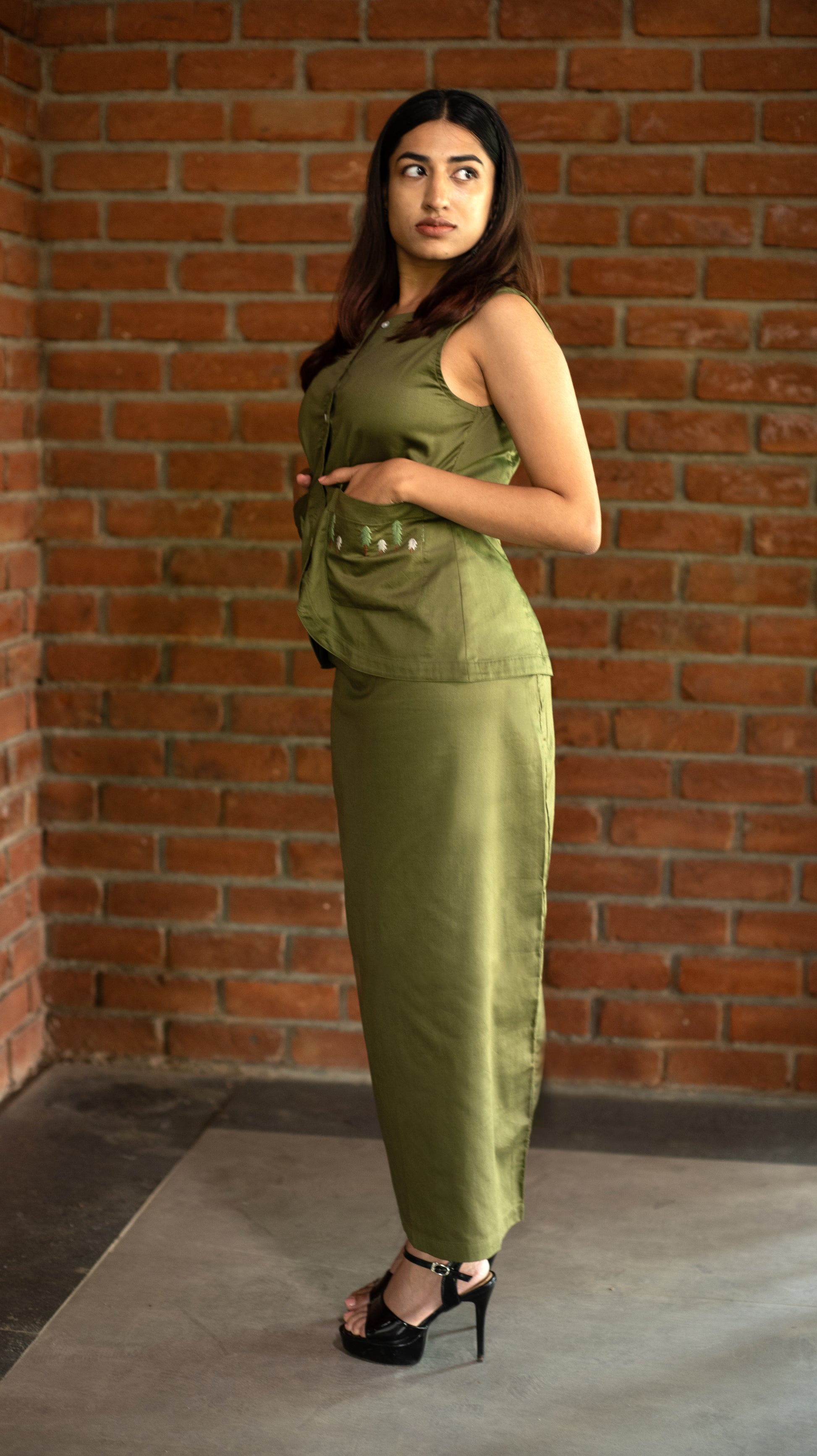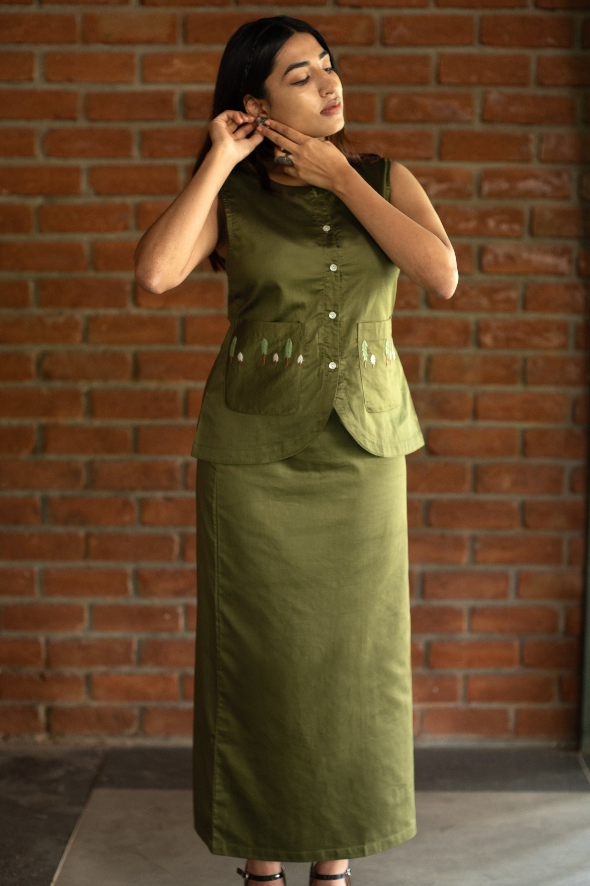 - Crafted from 100% cotton with a rich, olive green hue that drapes beautifully and can be worn as a set for a statement look or styled separately for endless outfit possibilities.