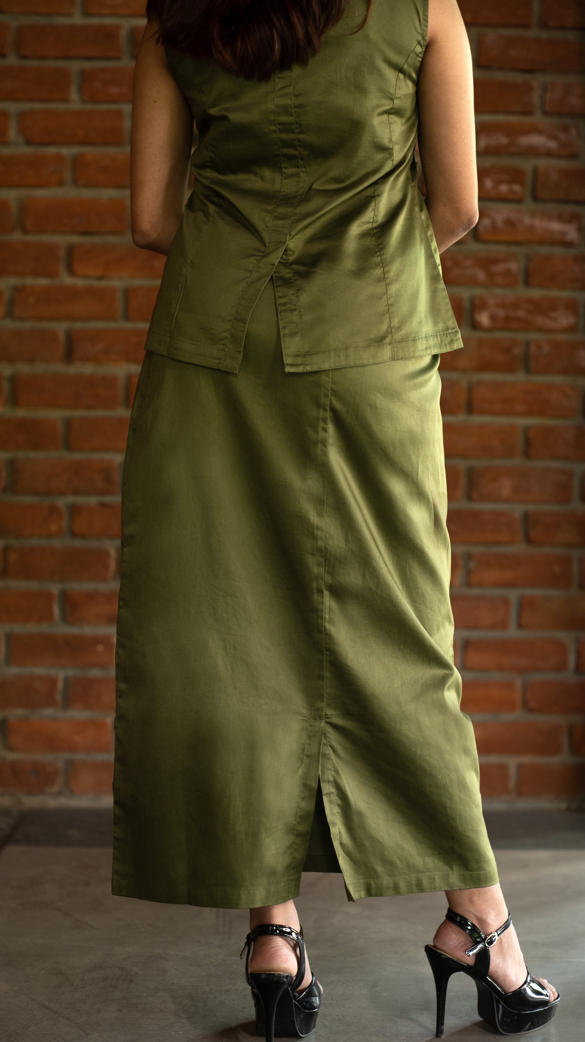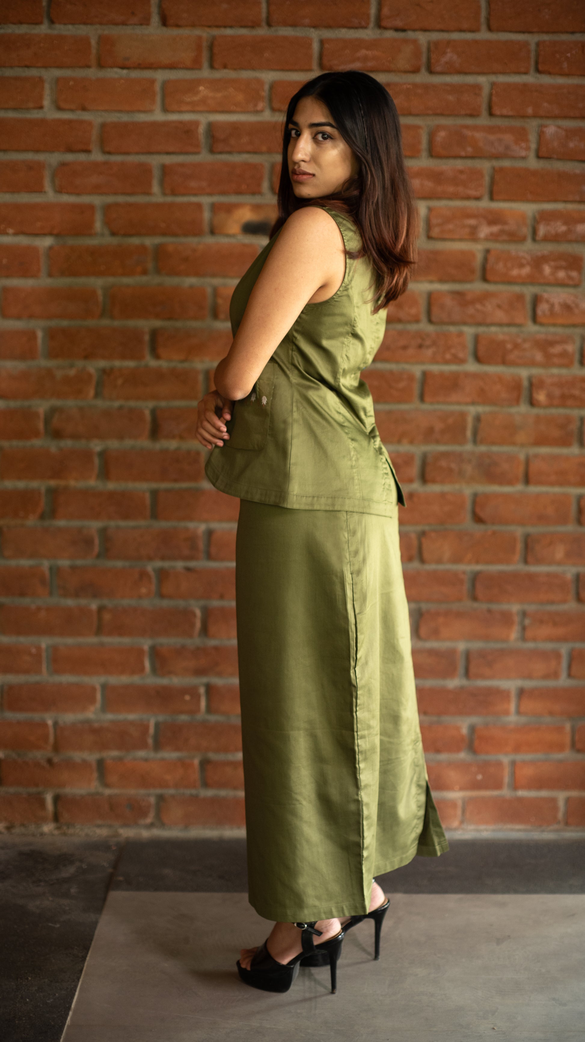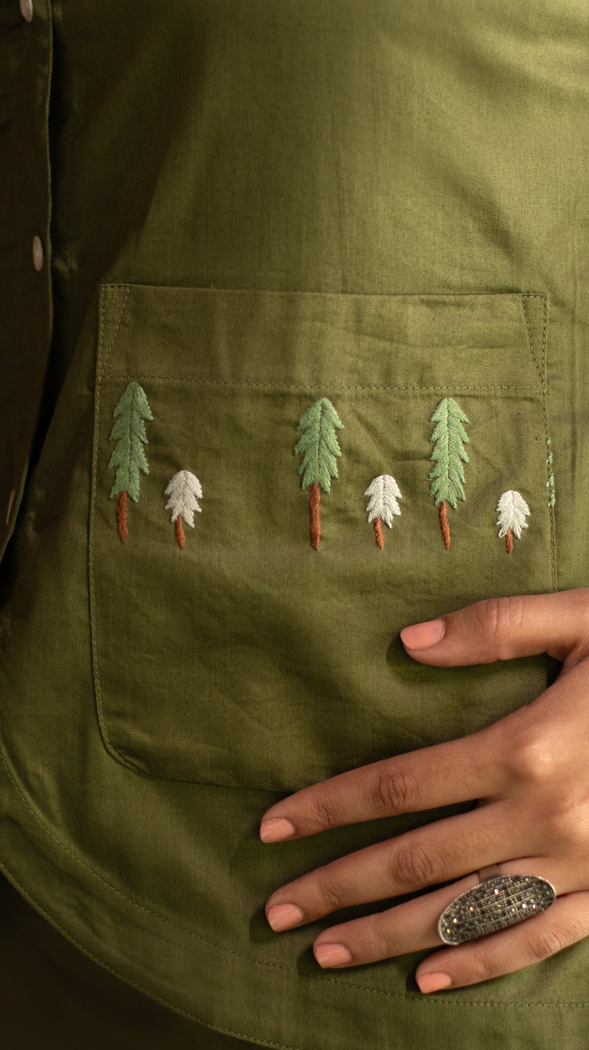 - Crafted from 100% cotton with a rich, olive green hue that drapes beautifully and can be worn as a set for a statement look or styled separately for endless outfit possibilities.